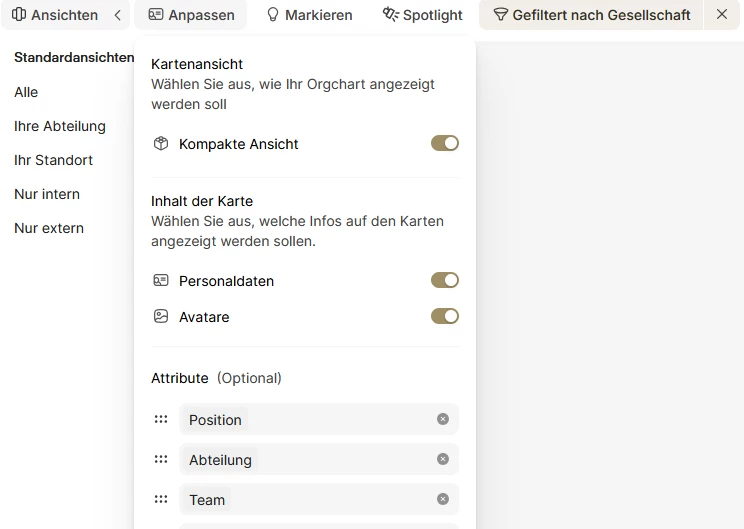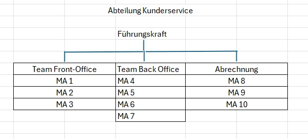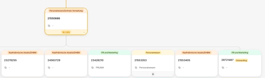 besteht die Möglichkeit im OrgChart die Teams einer Abteilung etwas getrennt anzeigen zu lassen? Alle Mitarbeiter haben den gleichen Vorgesetzen. Allerdings werden MA vom Team 1 nicht separat angezeigt (siehe Team PR und Marketing), sondern die MA von Team 1,2,3,4 sind durcheinander vermischt - besteht hier die Möglichkeit, dies etwas schöner aufzuschlüssen? Vielen Dank.